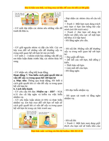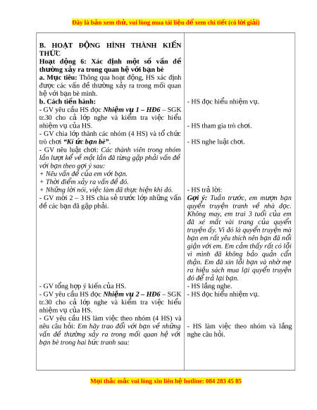 ệ đ xe ể m chi ti t (c ế ó lời gi i ả ) B. HO T Ạ Đ N Ộ G HÌNH THÀNH KI N Ế THỨC Ho t ạ đ ng ộ 6: Xác đ nh ị m t ộ số v n ấ đề thư ng ờ x y ả ra trong quan h ệ v i ớ b n ạ bè a. M c