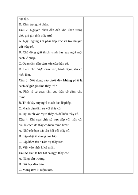 - Đề xuất được những việc làm cụ thể để nuôi dưỡng, giữ gìn tình thầy trò. 2. Năng lực