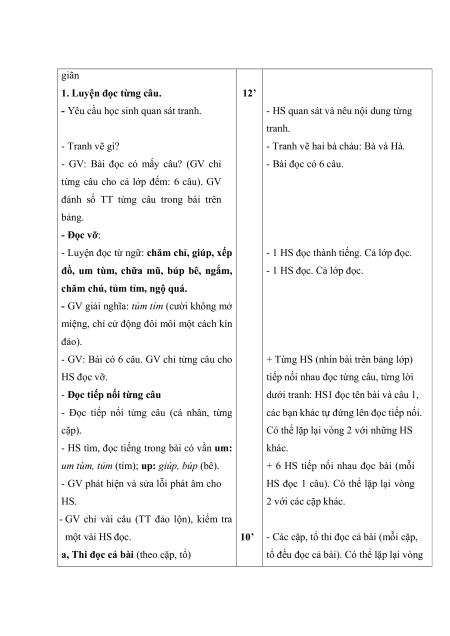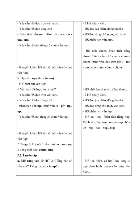 - Nhận biết các vần um, up; đánh vần, đọc đúng tiếng có các vần um, up.