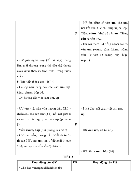 - HS viết: chum, búp (bê). TIẾT 2 Hoạt động của GV TG Hoạt động của HS