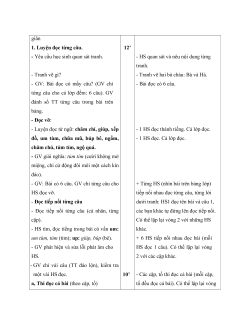 III. CÁC HOẠT ĐỘNG CỤ THỂ TIẾT 1 Hoạt động của GV TG Hoạt động của HS 1. Khởi động: 5’
