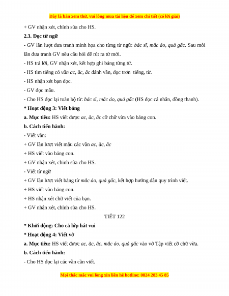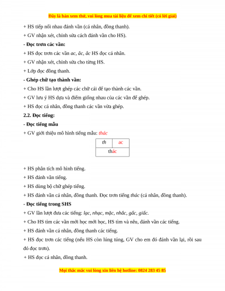 - GV: Nắm vững đặc điểm phát âm; cấu tạo và quy trình viết các vần ac, ăc, âc; đoạn