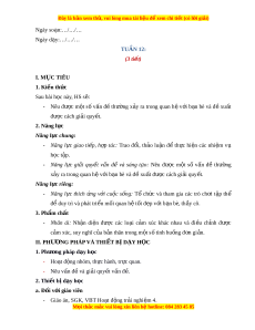 ệ đ xe ể m chi ti t (c ế ó lời gi i ả ) Ngày so n ạ :…/…/… Ngày d y ạ :…/…/… TUẦN 12: (3 ti t ế ) I. M C Ụ TIÊU 1. Ki n ế th c ứ Sau bài h c ọ này, HS s : ẽ - Nêu đ c ượ m t ộ s ố v n ấ đ ề th n ườ g x y ả ra trong quan h ệ v i ớ b n ạ bè và đ ề xu t ấ đ c ượ cách gi i ả quy t ế . 2. Năng l c ự Năng l c ự chung: - Năng l c ự giao ti p ế , h p ợ tác: Trao đ i ổ , th o ả lu n ậ để th c ự hi n ệ các nhi m ệ vụ h c ọ t p ậ . - Năng l c ự gi i ả quy t ế v n ấ đề và sáng t o ạ : Nêu đ c ượ m t ộ số v n ấ đề th n ườ g x y ả ra trong quan h ệ v i ớ b n ạ bè và đ ề xu t ấ đ c ượ cách gi i ả quy t ế . Năng l c ự riêng: - Năng l c ự thích n ứ g v i ớ cu c ộ s n ố g: Tổ ch c