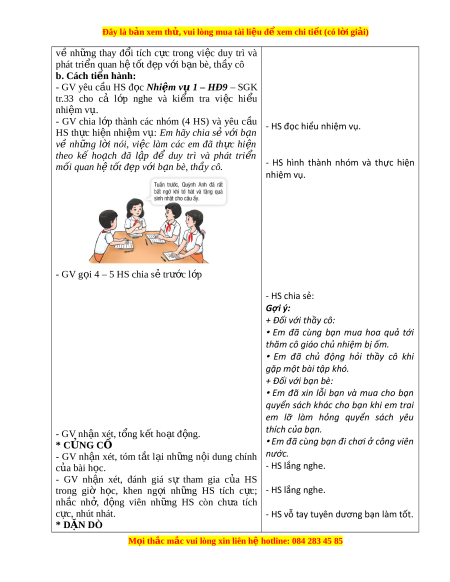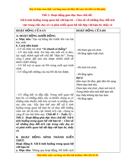 ệ đ xe ể m chi ti t (c ế ó lời gi i ả ) Tiết 2: Ho t ạ đ ng ộ giáo d c ụ theo ch ủ đ : ề X ử lí tình hu ng ố trong quan h ệ v i ớ b n ạ bè – Chia s ẻ v ề nh ng ữ thay đ i ổ tích c c ự trong vi c