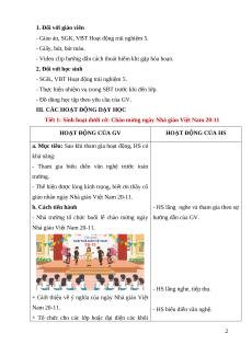 - Nhà trường tổ chức buổi lễ chào mừng ngày hướng dẫn của GV. Nhà giáo Việt Nam 20-11. - HS lắng nghe, tiếp thu.