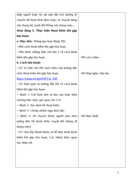 - GV cho HS cả lớp xem video Kỹ năng thoát - HS xem video. nạn khi có cháy https://youtu.be/6wMVzaXPwUE
