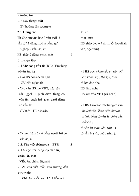 - GV hướng dẫn tương tự 2.3. Củng cố: ăn, ăt