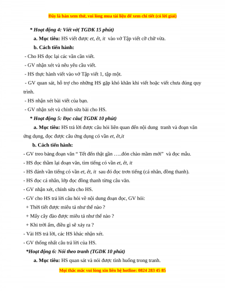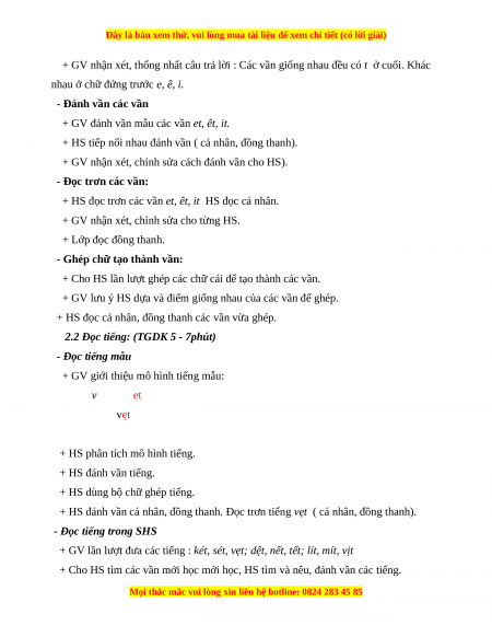 - GV: Nắm vững đặc điểm phát âm ; cấu tạo và quy trình viết các vần et, êt, it; đoạn