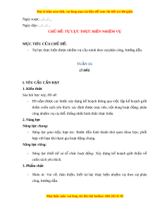 ệ đ xe ể m chi ti t (c ế ó lời gi i ả ) Ngày so n ạ :…/…/… Ngày d y ạ :…/…/… CHỦ Đ : Ề TỰ L C Ự TH C Ự HI N Ệ NHI M Ệ VỤ MỤC TIÊU C A Ủ CH Ủ Đ : Ề - T ự l c ự th c ự hi n ệ đ c ượ nhi m ệ v ụ c a ủ mình theo s ự phân công, h n ướ g d n ẫ . TUẦN 13: (3 ti t ế ) I. YÊU C U Ầ C N Ầ Đ T Ạ 1. Ki n ế th c ứ Sau bài h c ọ này, HS s : ẽ - HS n m ắ đ c ượ các b c ướ xây d n ự g k ế ho c ạ h thông qua vi c ệ l p ậ k ế ho ch ạ gi i ớ thiệu cu n