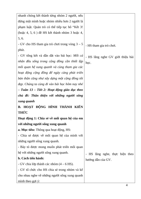 – Tuần 13 – Tiết 2: Hoạt động giáo dục theo
