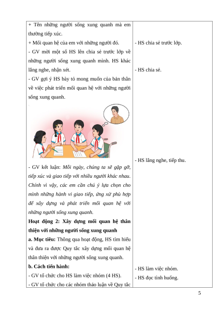 - Lập được Quy tắc xây dựng mối quan hệ thân thiện với những người xung quanh.