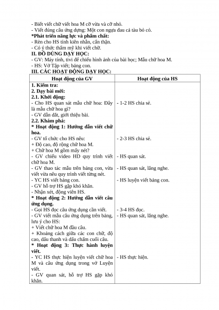 - Biết viết chữ viết hoa M cỡ vừa và cỡ nhỏ.