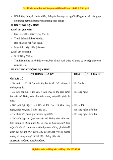 III. CÁC HOẠT ĐỘNG DẠY HỌC