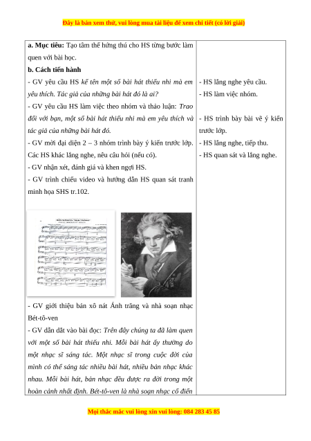 - Tìm hiểu thông tin về Bét-tô-ven, bản xô-nát Ánh trăng và dụng cụ học tập theo yêu