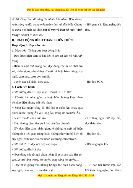 ta cùng tìm hiểu bài đọc Bét-tô-ven và bản xô-một "Ánh
