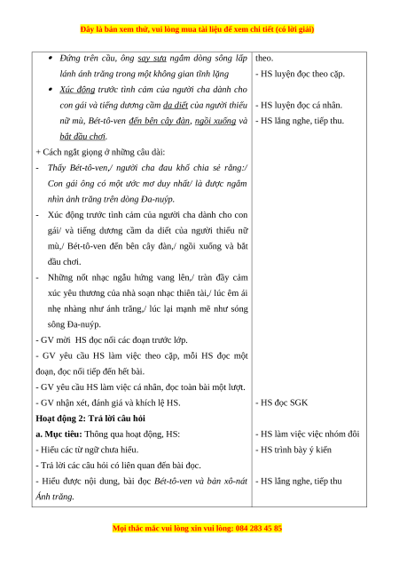 - Đọc đúng từ ngữ, câu, đoạn và toàn bộ câu chuyện Bét-tô-ven và bản xô-nát “Ánh trăng”.