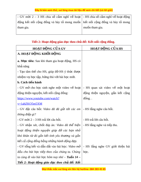 ắ g nghe và tham gia theo sự theo chủ đề K t ế n i ố c n ộ g đ n ồ g. N i ộ dung di n ễ h n ướ g d n ẫ c a ủ GV. đàn nói về ý nghĩa c a ủ ho t ạ đ n ộ g k t ế n i ố c n ộ g đ n ồ g, tên nh n ữ g ho t ạ đ n ộ g k t ế n i ố c n ộ g đ n ồ g mà HS có th ể tham gia, giá tr ịc a ủ ho t ạ đ n ộ g k t ế n i ố c n ộ g đ n ồ g mang l i ạ cho b n ả thân và xã h i ộ .