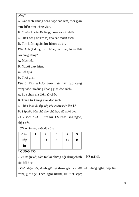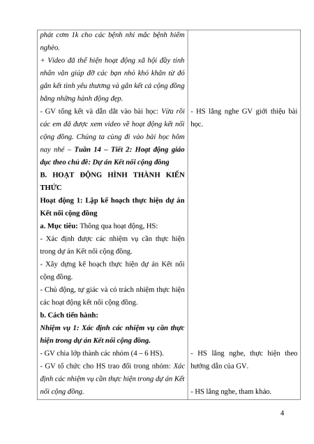 định các nhiệm vụ cần thực hiện trong dự án Kết nối cộng đồng. - HS lắng nghe, tham khảo. 4