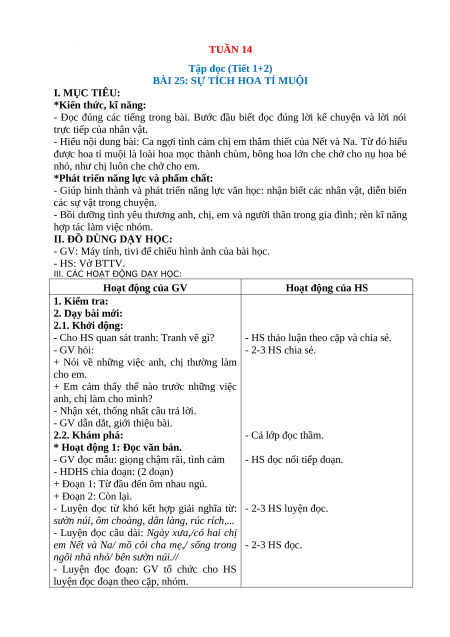 BÀI 25: SỰ TÍCH HOA TỈ MUỘI I. MỤC TIÊU: *Kiến thức, kĩ năng: