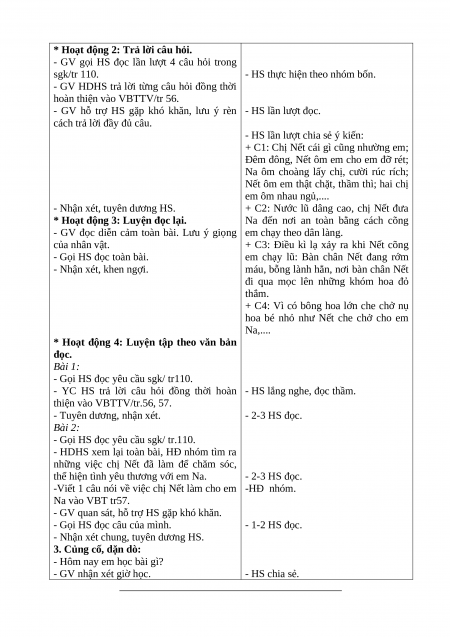 - Hiểu nội dung bài: Ca ngợi tình cảm chị em thắm thiết của Nết và Na. Từ đó hiểu