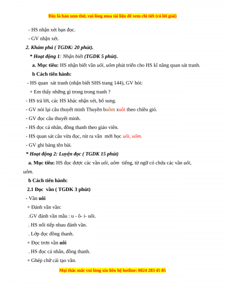 a. Mục tiêu: HS đọc được các vần uôi, uôm tiếng, từ ngữ có chứa các vần uôi, uôm. b Cách tiến hành: