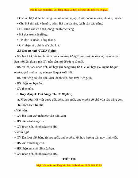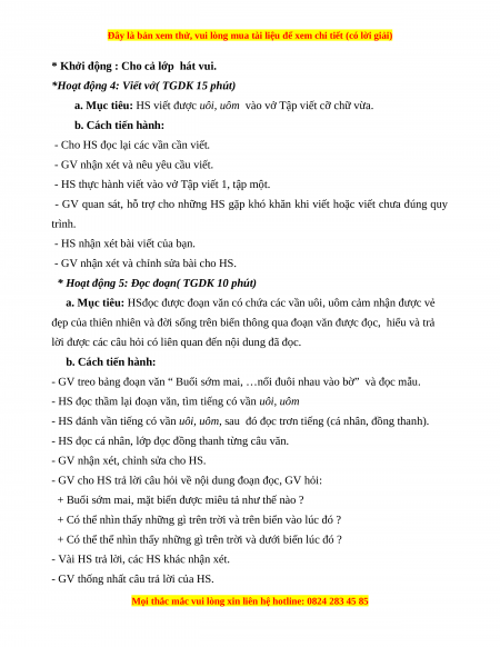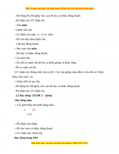 - GV: Nắm vững đặc điểm phát âm ; cấu tạo và quy trình viết các vần uôi, uôm