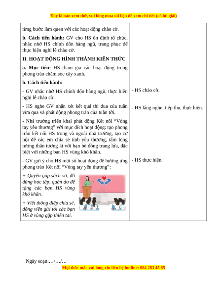 - Biết được kế hoạch của nhà trường, của Đội về tổ chức hoạt động Kết nối “Vòng tay yêu thương”.