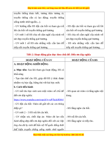 ụ tiêu: Sau khi tham gia ho t ạ đ n ộ g, HS có kh ả năng: - Bi t ế đ c ượ m t ộ số nét đ p ẹ truy n ề th n ố g c a ủ quê h n ươ g. - T ự hào v ề truy n ề th n ố g quê h n ươ g. b. Cách ti n ế hành - GV T n ổ g phụ trách Đ i ộ tổ ch c ứ sinh ho t ạ về - HS l n