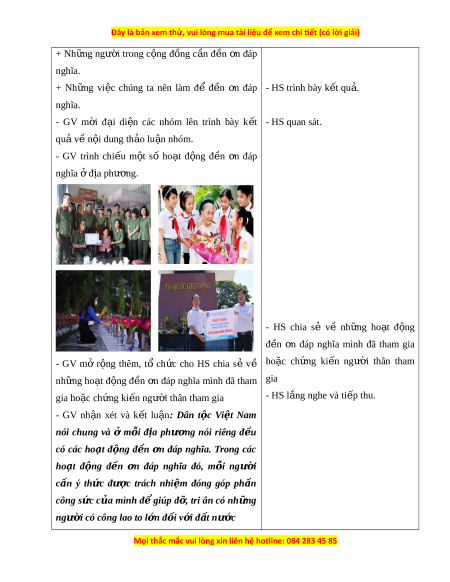 ớ thành các nhóm 4 - 6 HS. GV. - HS l n ắ g nghe, th c ự hi n ệ . - GV gia nhi m ệ v ụ cho các nhóm chia s ẻ và th o ả lu n ậ nh n ữ g ho t ạ đ n ộ g đ n ề n ơ đáp nghĩa theo các ý + Nh n ữ g ho t ạ đ n ộ g đ n ề n ơ đáp nghĩa ở đ a ị ph n ươ g em. + Ý nghĩa c a ủ ho t ạ đ n ộ g đ n ề n ơ đáp nghĩa.