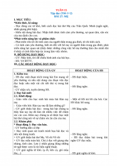 Tập đọc (Tiết 1+2) BÀI 27: MẸ I. MỤC TIÊU: *Kiến thức, kĩ năng: