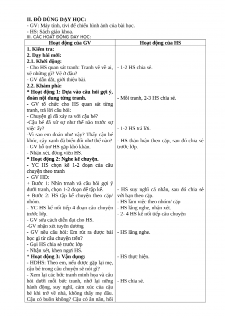 III. CÁC HOẠT ĐỘNG DẠY HỌC: