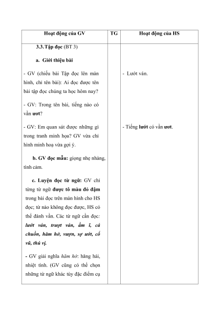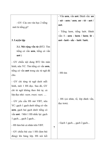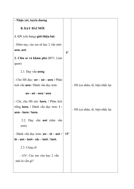 - Đánh vần đọc trơn: ươ - tờ - ươt / 15’