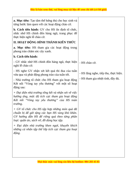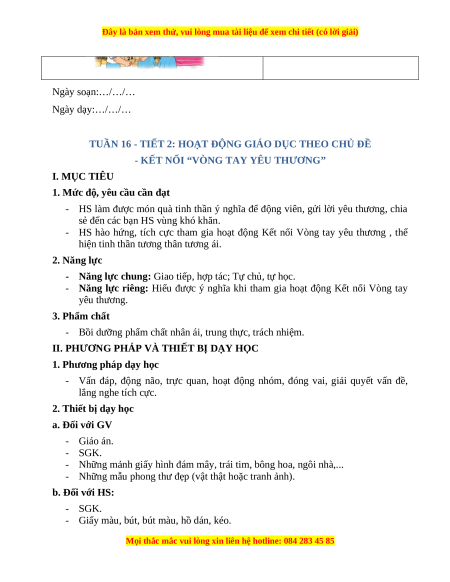 - Năng lực riêng: Hiểu được ý nghĩa khi tham gia hoạt động Kết nối Vòng tay yêu thương. 3. Phẩm chất