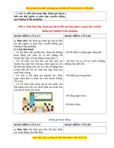 ệ đ xe ể m chi ti t (c ế ó lời gi i ả ) Ngày so n ạ :…/…/… Ngày d y ạ :…/…/… TUẦN 16: (3 ti t ế ) I. YÊU C U Ầ C N Ầ Đ T Ạ 1. Ki n ế th c ứ Sau bài h c ọ này, HS s : ẽ - Tham gia tích c c ự ho t ạ đ n ộ g đ n ề n ơ đáp nghĩa và ho t ạ đ n ộ g giáo d c ụ truy n ề th n ố g đ a ị ph n ươ g. 2. Năng l c ự Năng l c ự chung: - Năng l c ự giao ti p ế , h p ợ tác: H p ợ tác v i ớ b n ạ , v i ớ c n ộ g đ n ồ g đ ể th c ự hi n ệ kế ho ch ạ k t ế n i ố nh n ữ g ng i ườ xung quanh. Năng l c ự riêng: - Năng l c ự thích n ứ g v i ớ cu c ộ s n ố g: Xác đ n ị h đ c ượ các vi c ệ làm có văn hóa, phù h p ợ v i ớ truy n ề th n ố g quê h n ươ g đ ể n ứ g x ử phù h p ợ ở n i ơ công c n ộ g và khi tham gia các ho t ạ đ n ộ g giáo d c ụ truy n ề th n ố g. - Năng l c ự thi t ế kế và tổ ch c ứ ho t ạ đ n ộ g: L p ậ kế ho c ạ h và th c ự hi n ệ tích c c ự các ho t ạ đ n ộ g đ n ề n ơ đáp nghĩa. 3. Phẩm ch t ấ