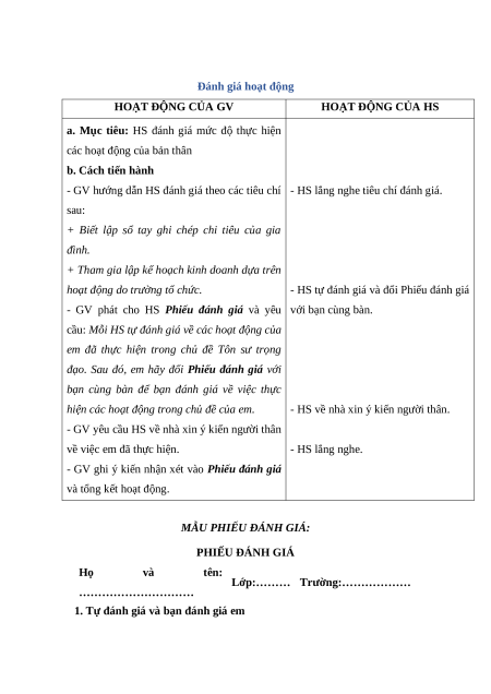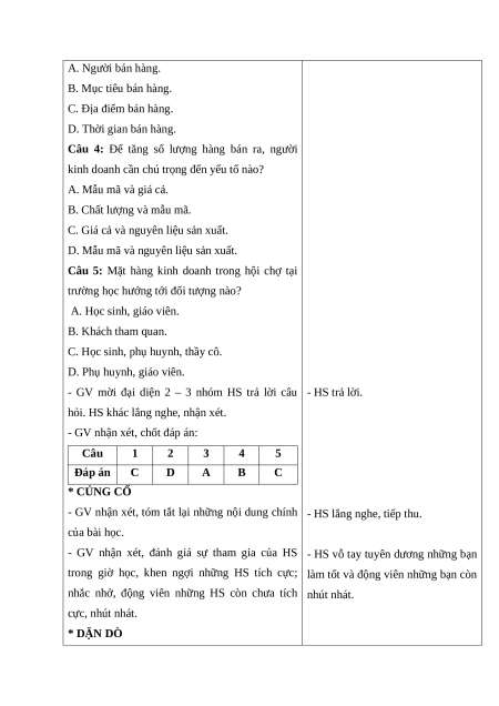 độc lập hay theo nhóm; Trao đổi tích cực với giáo viên và các bạn khác trong lớp.