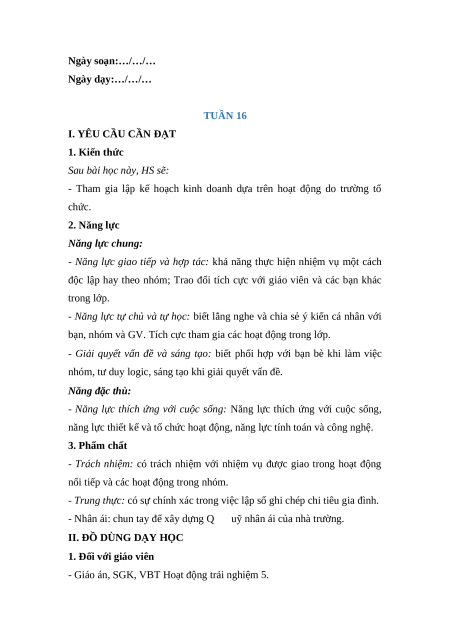 Ngày soạn:…/…/… Ngày dạy:…/…/… TUẦN 16