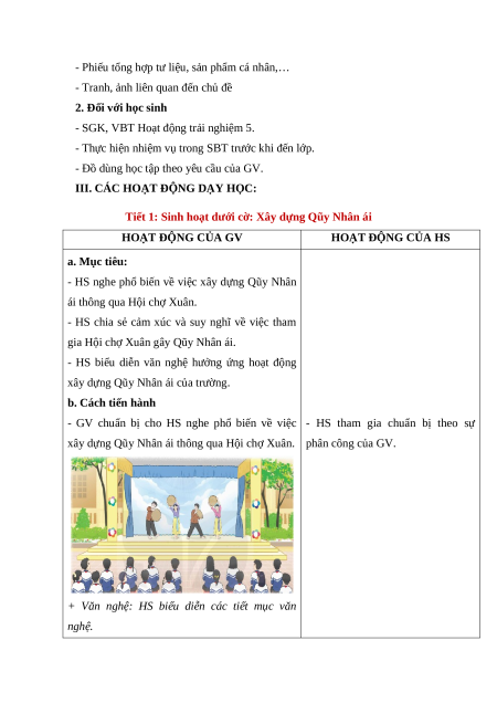xây dựng Qũy Nhân ái thông qua Hội chợ Xuân. phân công của GV.
