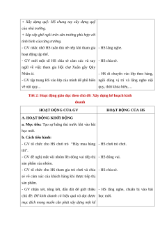 Tiết 2: Hoạt động giáo dục theo chủ đề: Xây dựng kế hoạch kinh doanh HOẠT ĐỘNG CỦA GV HOẠT ĐỘNG CỦA HS