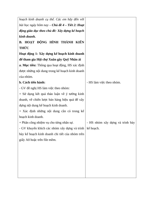 động giáo dục theo chủ đề: Xây dựng kế hoạch kinh doanh.