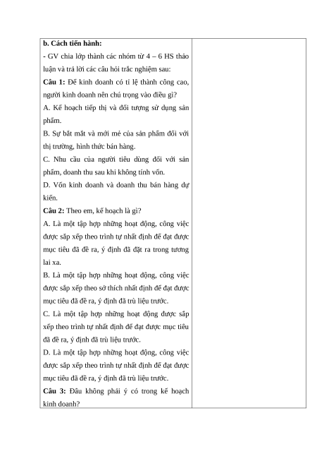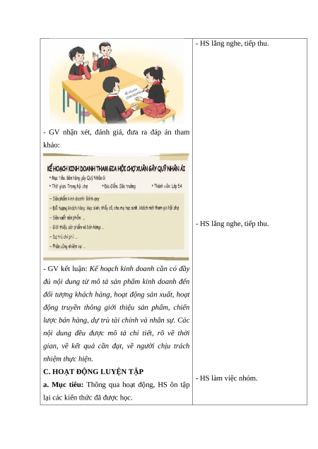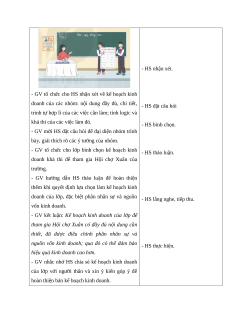 được những nội dung trong kế hoạch kinh doanh của nhóm. b. Cách tiến hành: - HS làm việc theo nhóm.