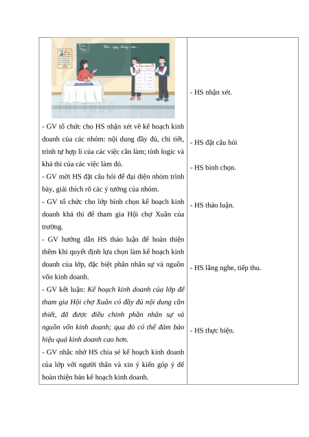 Hoạt động 1: Xây dựng kế hoạch kinh doanh