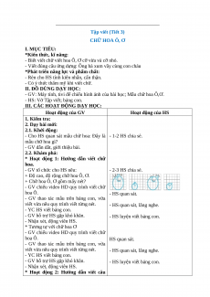 __________________________________________ Tập viết (Tiết 3) CHỮ HOA Ô, Ơ I. MỤC TIÊU: *Kiến thức, kĩ năng: