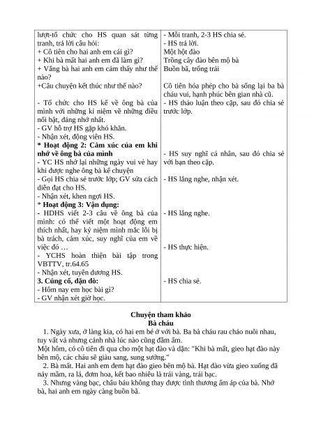 - HDHS viết 2-3 câu về ông bà của