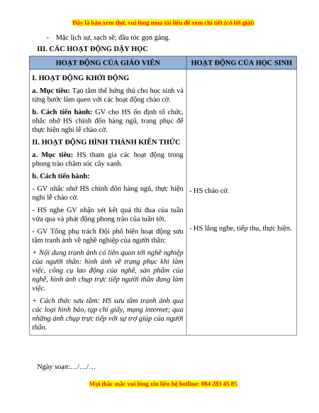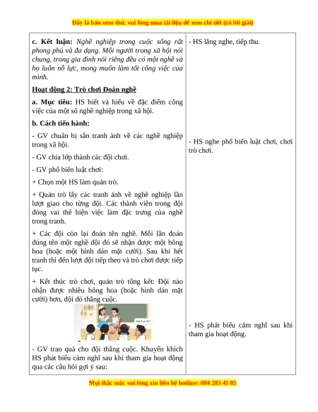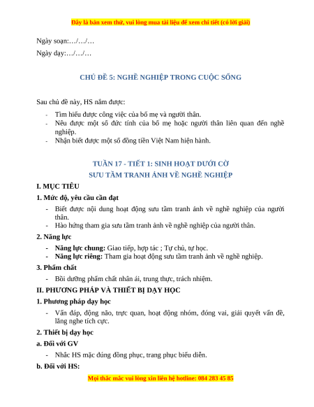 - Năng lực riêng: Tham gia hoạt động sưu tầm tranh ảnh về nghề nghiệp. 3. Phẩm chất