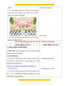 ư : Em hãy chia sẻ c m ả nghĩ sau bu i ổ giao l u ư ? Tiết 2: Ho t ạ đ ng ộ giáo d c ụ theo ch ủ đ : ề G n ắ k t ế yêu thư n ơ g HO T Ạ ĐỘNG C A Ủ GV HOẠT ĐỘNG C A Ủ HS A. HOẠT ĐỘNG KH I Ở Đ N Ộ G a. M c ụ tiêu: T o ạ không khí vui t i ươ , HS hào h n ứ g b c ướ vào ti t ế tr i ả nghi m ệ . b. Cách ti n ế hành - GV m i