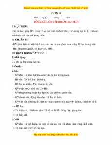 TỔNG KẾT, ÔN TẬP (HOẶC DỰ TRỮ) I. MỤC TIÊU:
