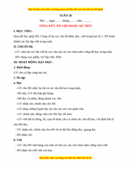 Đây là bàn xem thử, vui lòng mua tài liệu để xem chi tiết (có lời giải) TUẦN 18