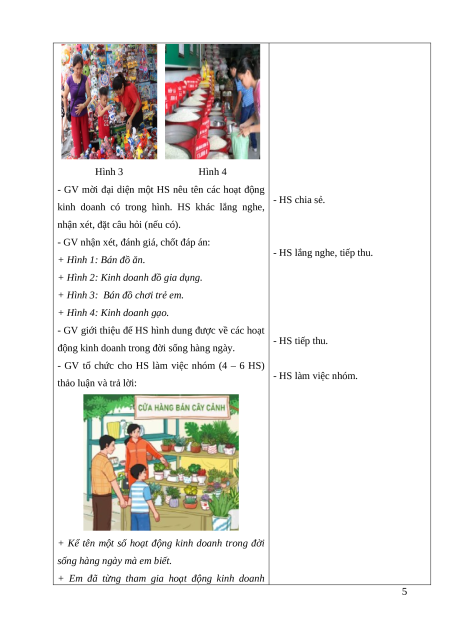 hoạt động kinh doanh trong đời sống. Hình 1 Hình 2 4