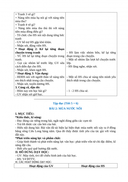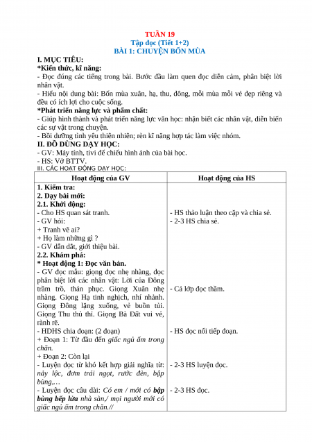 BÀI 1: CHUYỆN BỐN MÙA I. MỤC TIÊU: *Kiến thức, kĩ năng: