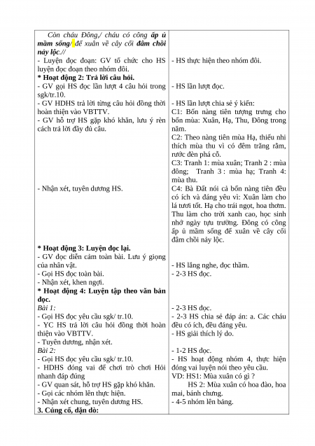 - Hiểu nội dung bài: Bốn mùa xuân, hạ, thu, đông, mỗi mùa mỗi vẻ đẹp riêng và